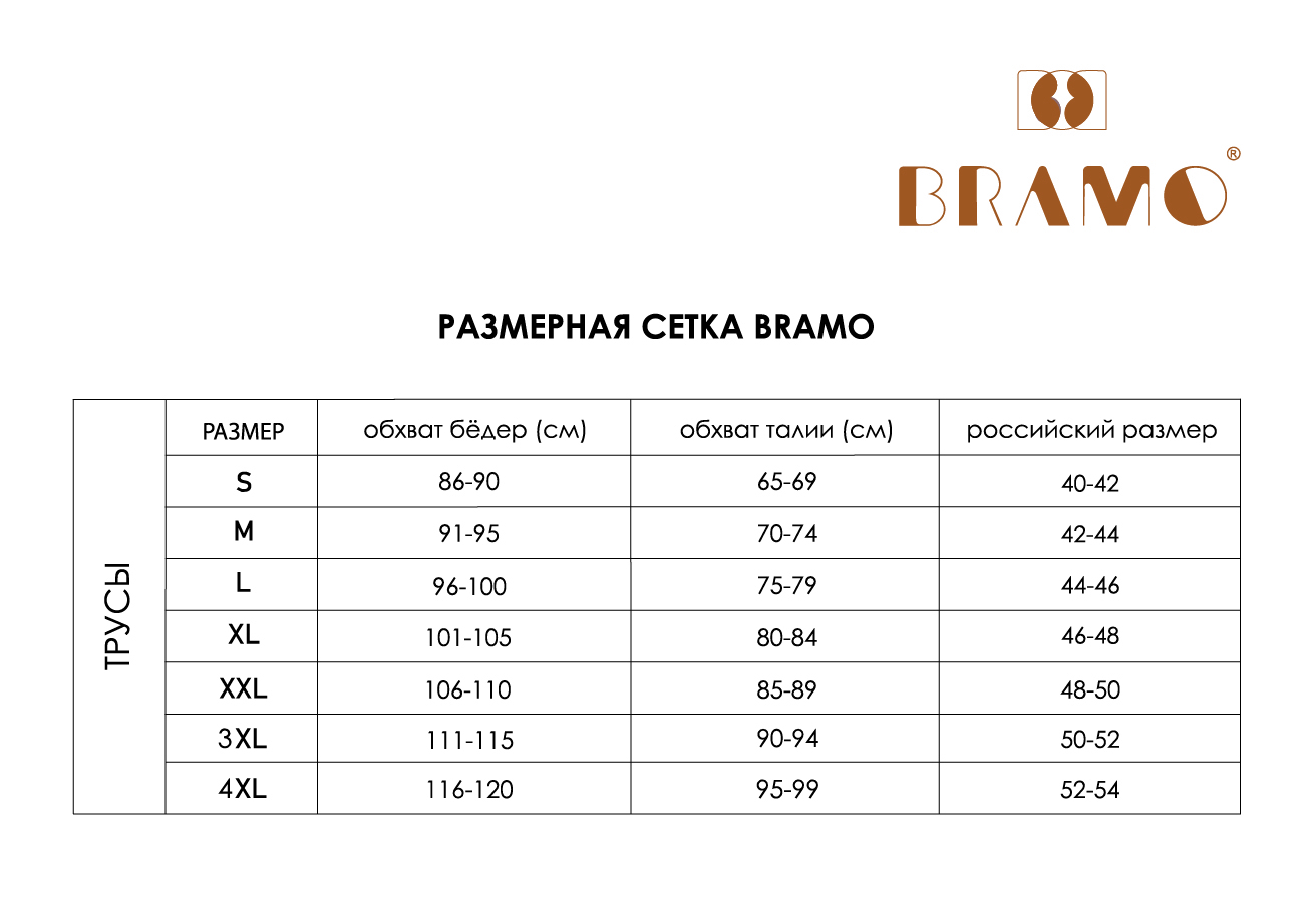 Трусы-бразильяно средней посадки с широкой боковой частью из эластичного кружевного полотна. Верхний срез усилен полосой из микрофибры для надежной фиксации на теле. Благодаря лазерной обрезке края, трусы не замены под одеждой. Оснащены ластовицей BRAMO из вискозного полотна с антибактериальным эффектом.